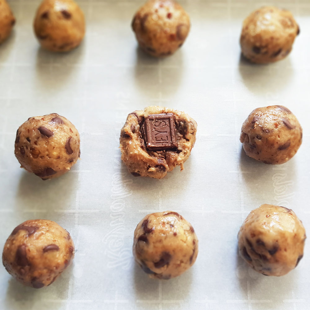 Place a piece of chocolate in the center of each ball and bake for a molten chocolaty center.