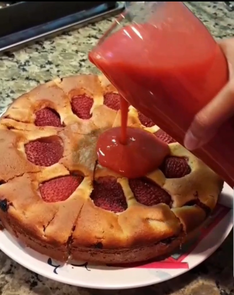 Moist and strawberry filled center with a delicious strawberry sauce topping. It is quick and easy to make. Enjoy!